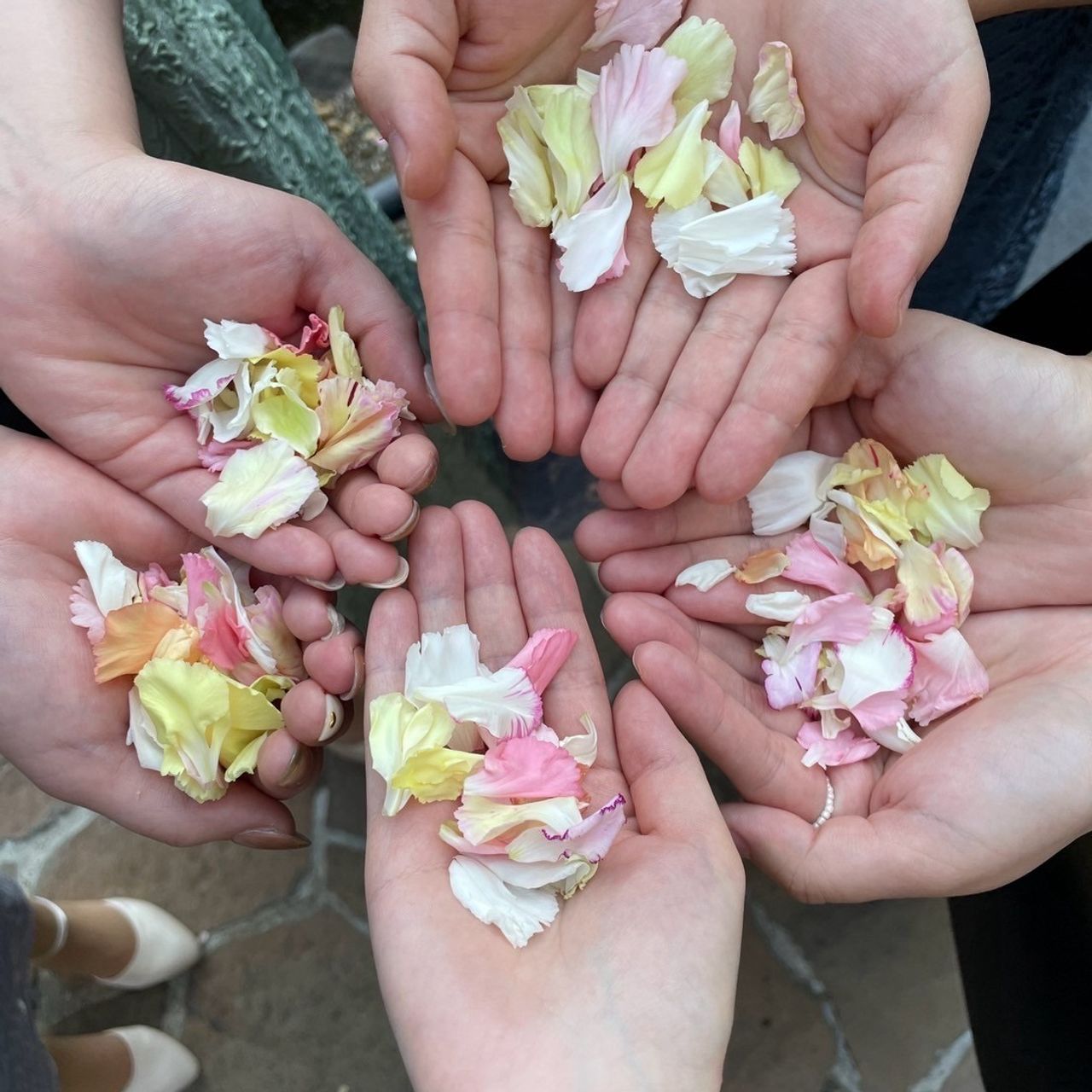 フラワーシャワーは本物の花びらでお願いしました🌸春の暖かな日にお祝いして頂くことが出来ました☺️