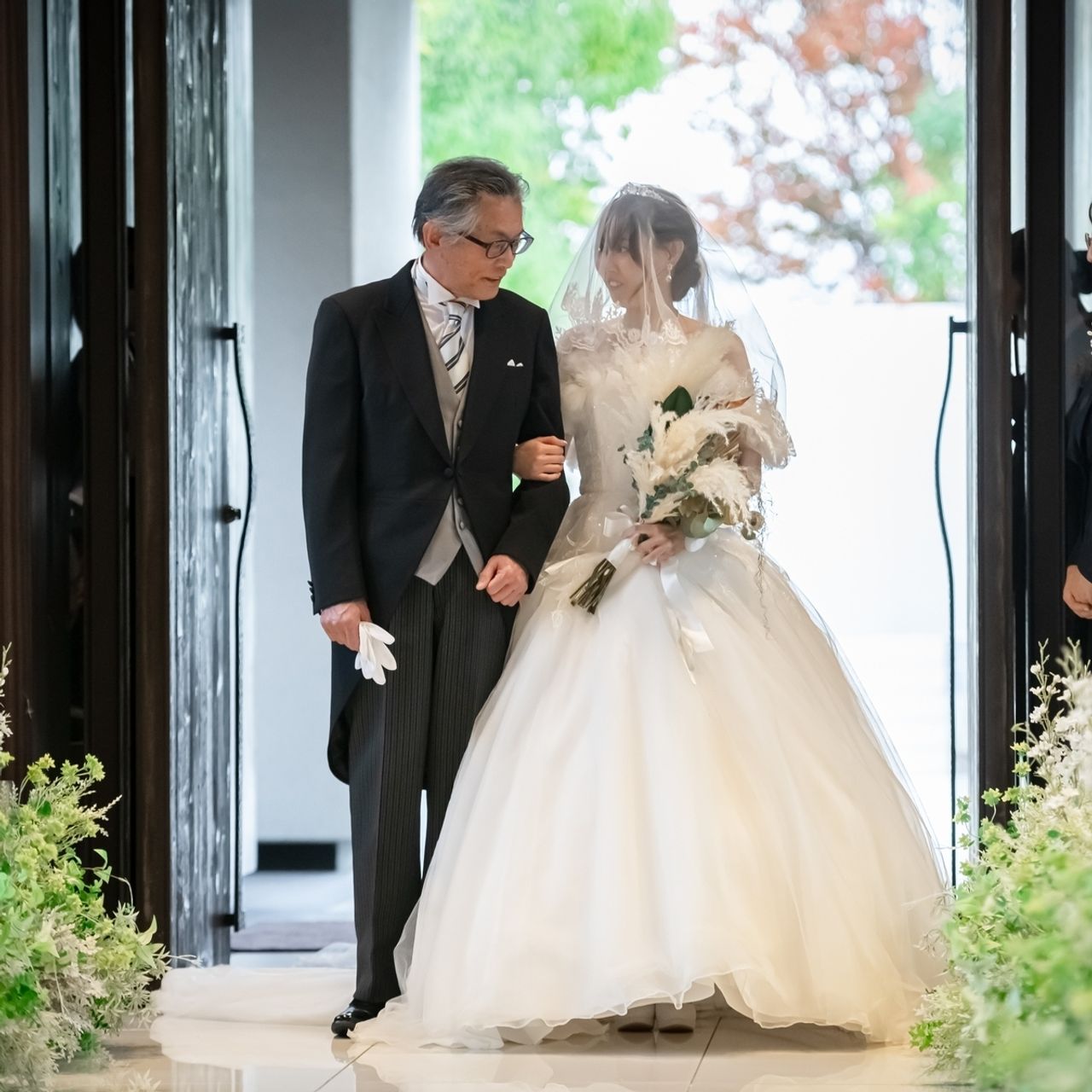 当日は晴れて、自然光と緑に包まれた開放感のある雰囲気の中で挙式ができたのも印象的でした。