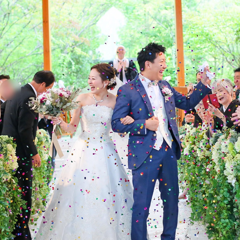 メインバック(高砂裏)からの入場、ジェット風船を100名規模でテラスで実施させてくれたり、お色直しあとは2階から階段を使っての登場などなど。