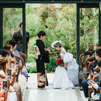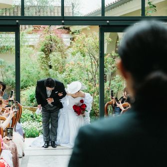 当日は昔を懐かしみながらたくさん笑って幸せな時間をともに過ごせるように、邸宅貸切で100人以上を迎えられて、ゲストとの距離も近く、ガーデンで自然の中でリラックスできるレストランウェディングを選びました。