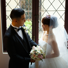 お庭にあるテントで海外のような雰囲気の挙式ができました。