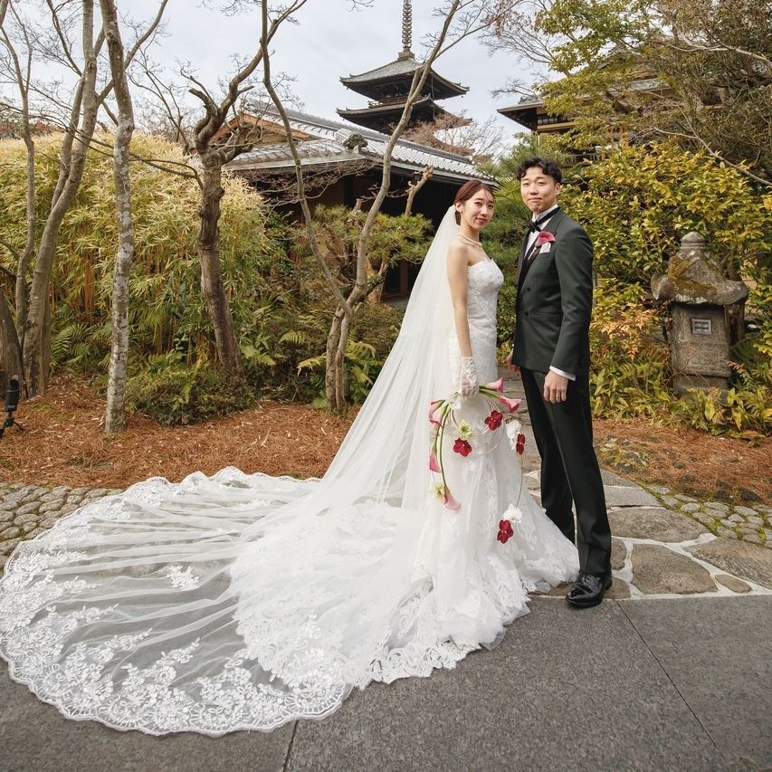 式場選びでは洋も和も譲れず、京都の日本らしさを大切にされていて、会場に入るとクラシカルな雰囲気もあり、両方の良いところ取りができるザ・ソウドウ東山京都(THE SODOH HIGASHIYAMA KYOTO)さん一択でした。また、京都出身の彼と私の祖父母のお墓がある東山での挙式を希望し、会場から東山ならではの八坂の塔が見えるのもマストな条件でした。