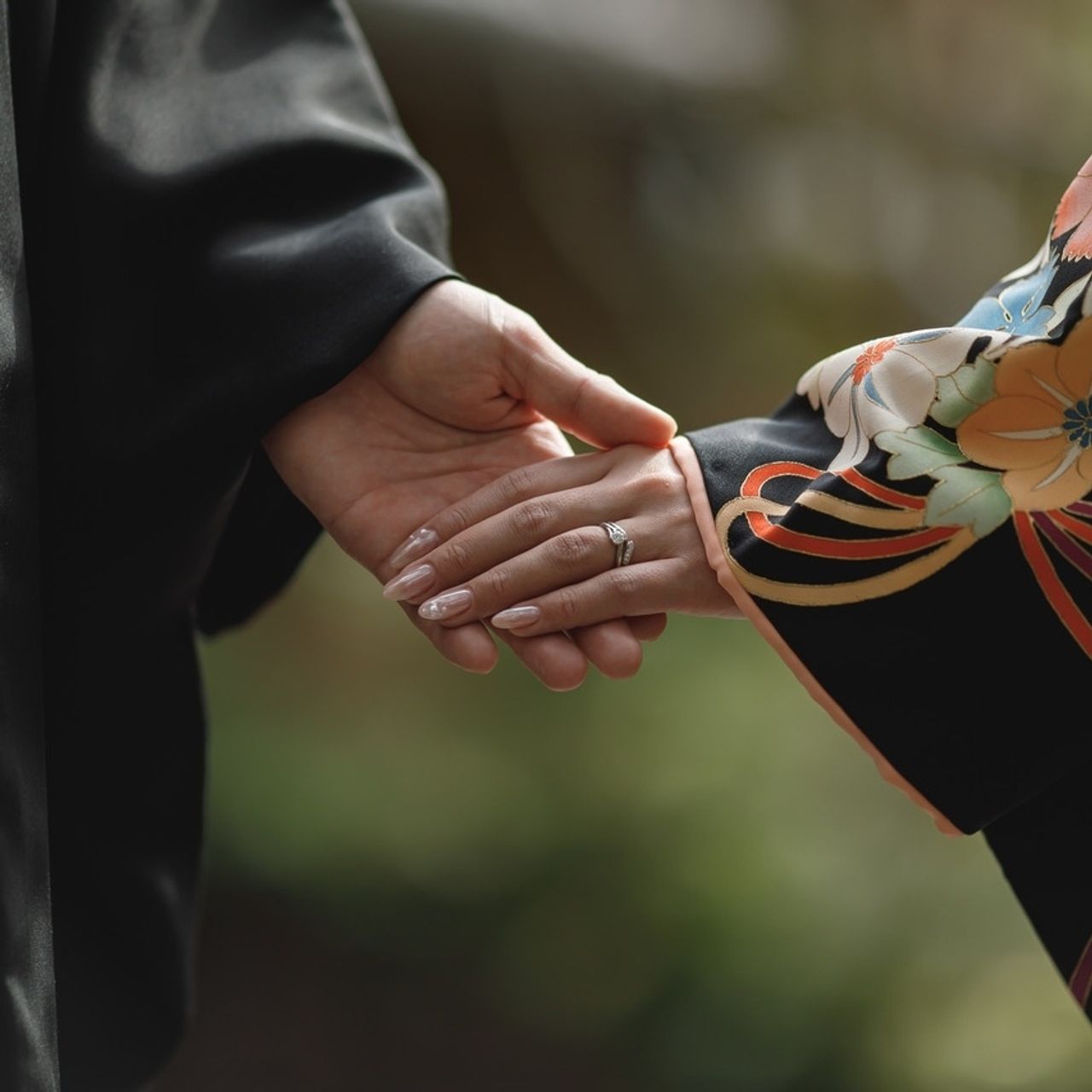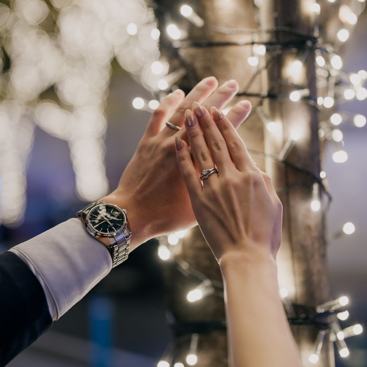 結婚指輪もNIWAKAの初桜にしたのですが“主人の結婚指輪が木の幹、私の結婚指輪が枝、婚約指輪が桜の花になるように重ねることで一体感が生まれる”というイメージを聞き、込められている意味合いにも感動しました。