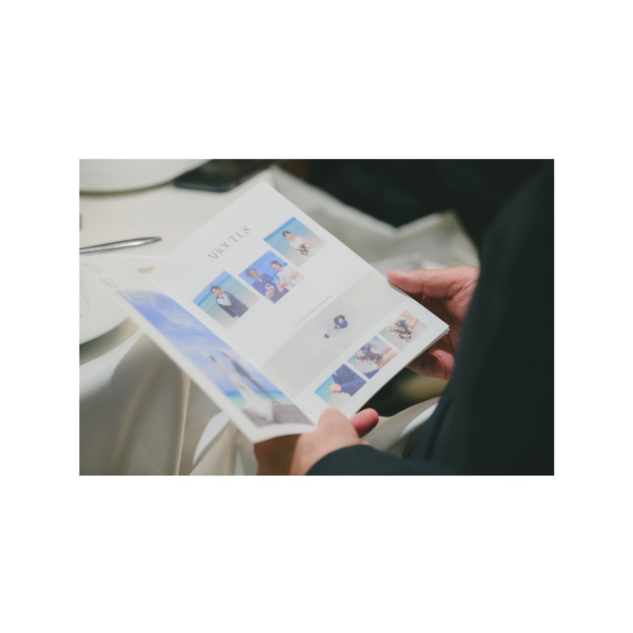 当初は披露宴会場に置く予定でしたが、メニューや席次表など早めに共有したほうが皆さんも安心できると思い、受付で配布する形にしました。