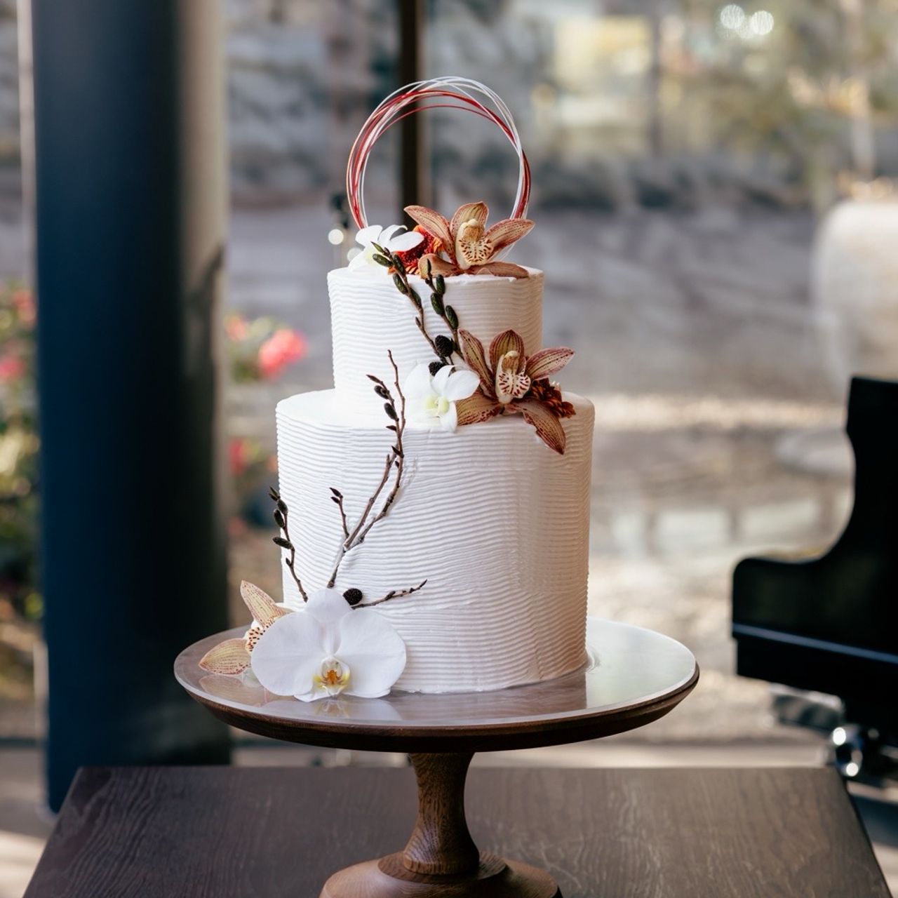 会場の装花に合わせてお任せで作っていただきました。和装でのケーキカットだったので和の雰囲気にしてくださったのかなと思います。当日までわからなかったですが素敵な仕上がりで嬉しかったです。