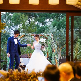 式の雰囲気は大人ナチュラル。 一番こだわったのは、参列者のみんなとの"繋がり"。一緒に作り上げたい気持ち、感謝を伝える式にしました。