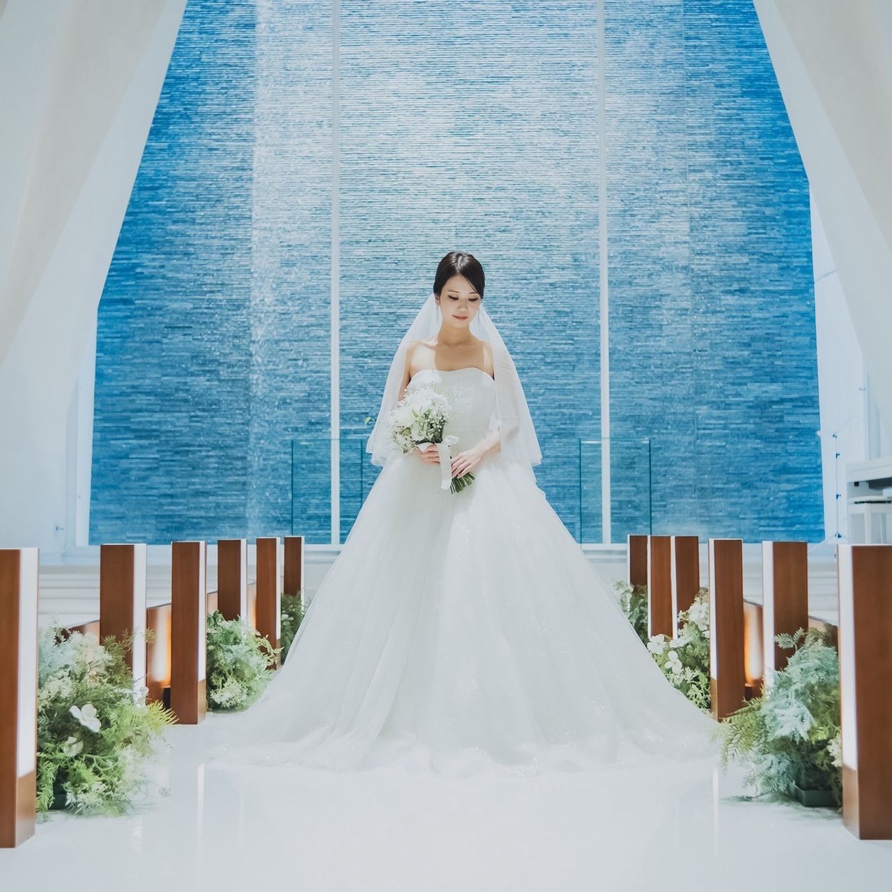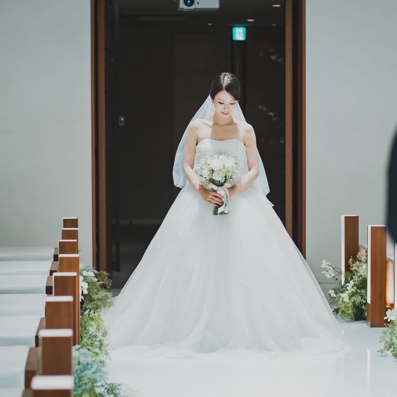 吹き抜けの白いチャペルに足を踏み入れた瞬間、美しさに圧倒されました。純白の空間はドレスとの相性が抜群で、花嫁が最も輝ける舞台だと心から感じました。
