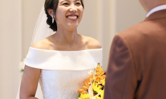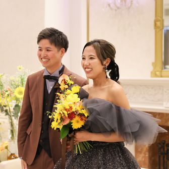 式場を選んだ決め手は、貸切できること、料理が美味しかったことです。お庭のある会場が珍しく、当日はゲストが飽きることなく自由に動き回れる空間をつくることができました。