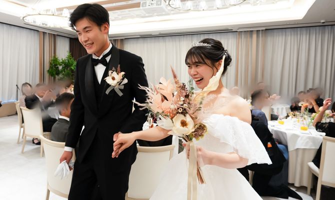 披露宴後には、通りの真ん中で写真を撮っていただき、通りすがりの方々から自然に祝福してもらえたことは、他ではなかなか味わえない体験として心に残っています。