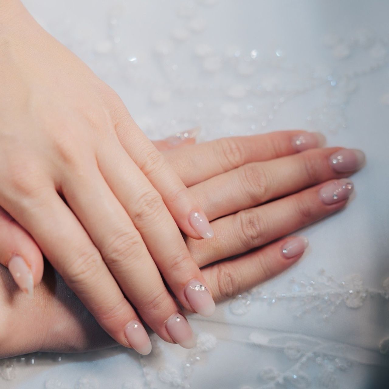 指先が綺麗に見える肌なじみの良いシアーなホワイトと、ストーンでキラキラにしてもらいました🤍🤍