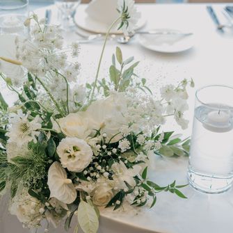 テーマは“お世話になった皆様へ感謝を伝える”です。子供と一緒の結婚式ということもあり、両親、親戚、恩師、仲間、本当にお世話になった皆様をご招待し、アットホームで温かい挙式・披露宴を心掛けました。そのため、アイテムや動画は手作り、余興よりもテーブルラウンドや写真タイム、キッズへのギフトを用意しました。料理は1番高いランクでおもてなしをしています。