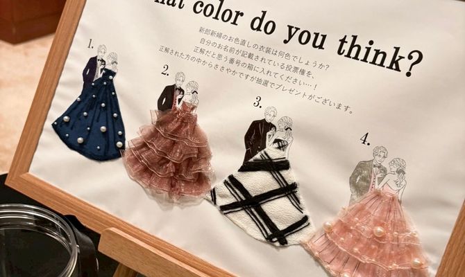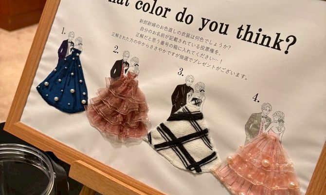 全ての始まりはお色直しのドレスが一番最初に決まったことにより、そのドレスの色に合わせてテーマカラーが決まりました。