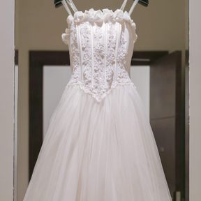ビスチェタイプのチュールドレスで、胸元のお花、レースが豪華な感じでした💕