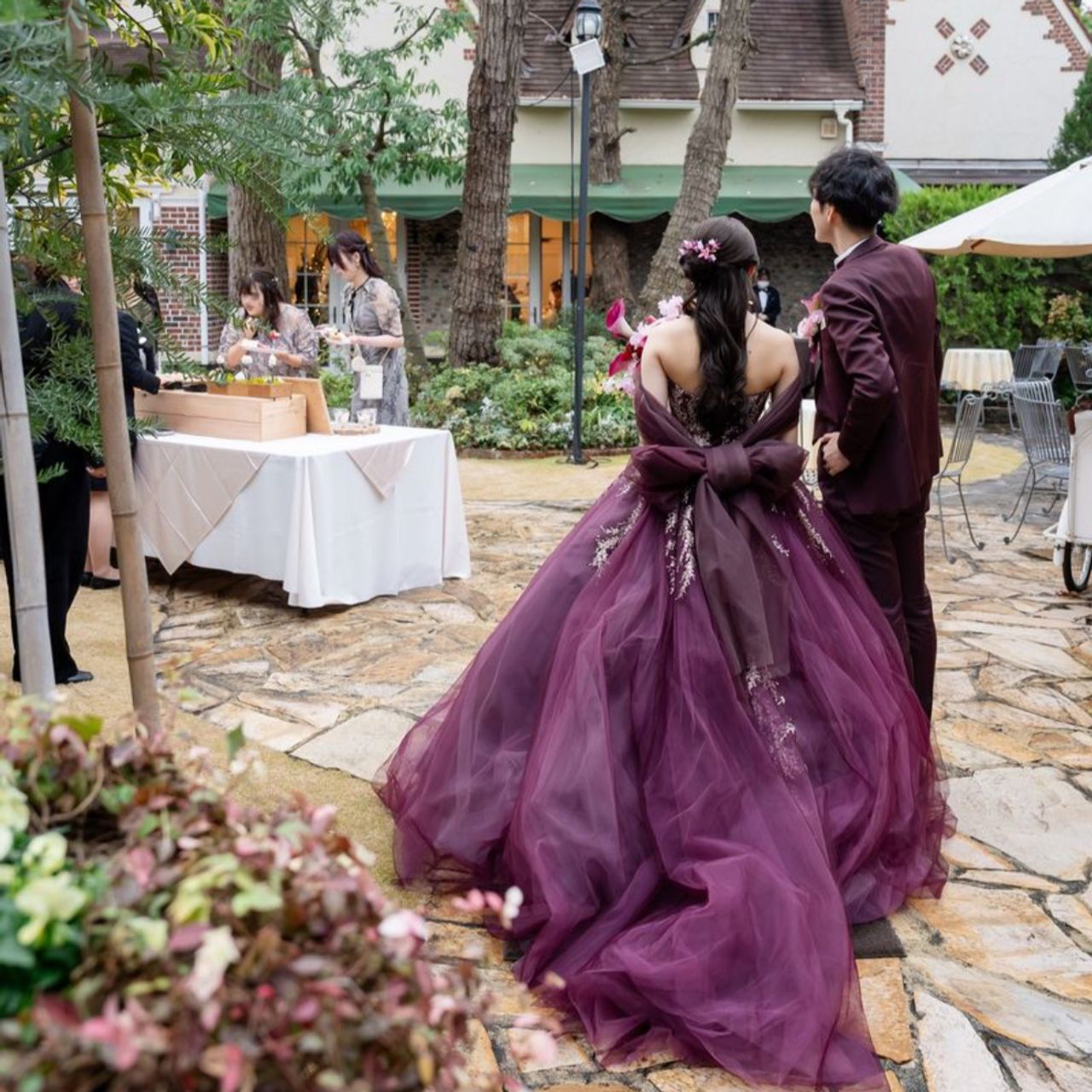 何層にも重なったチュールがふんわりとした立体感を生み出し、こっくりとしたラベンダーカラーがより一層華やかさを引き立ててくれるところが可愛くて、見た瞬間からお気に入りの一着になりました。