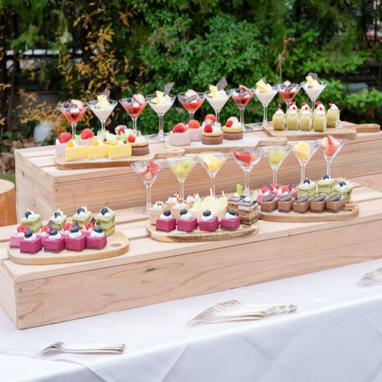 ガーデン付きの会場だったため、デザートビュッフェを屋外で行うことができました。開放的な空間の中で、ゲストとゆっくり交流する時間を持つことができ、とても楽しく思い出に残るひとときになりました。