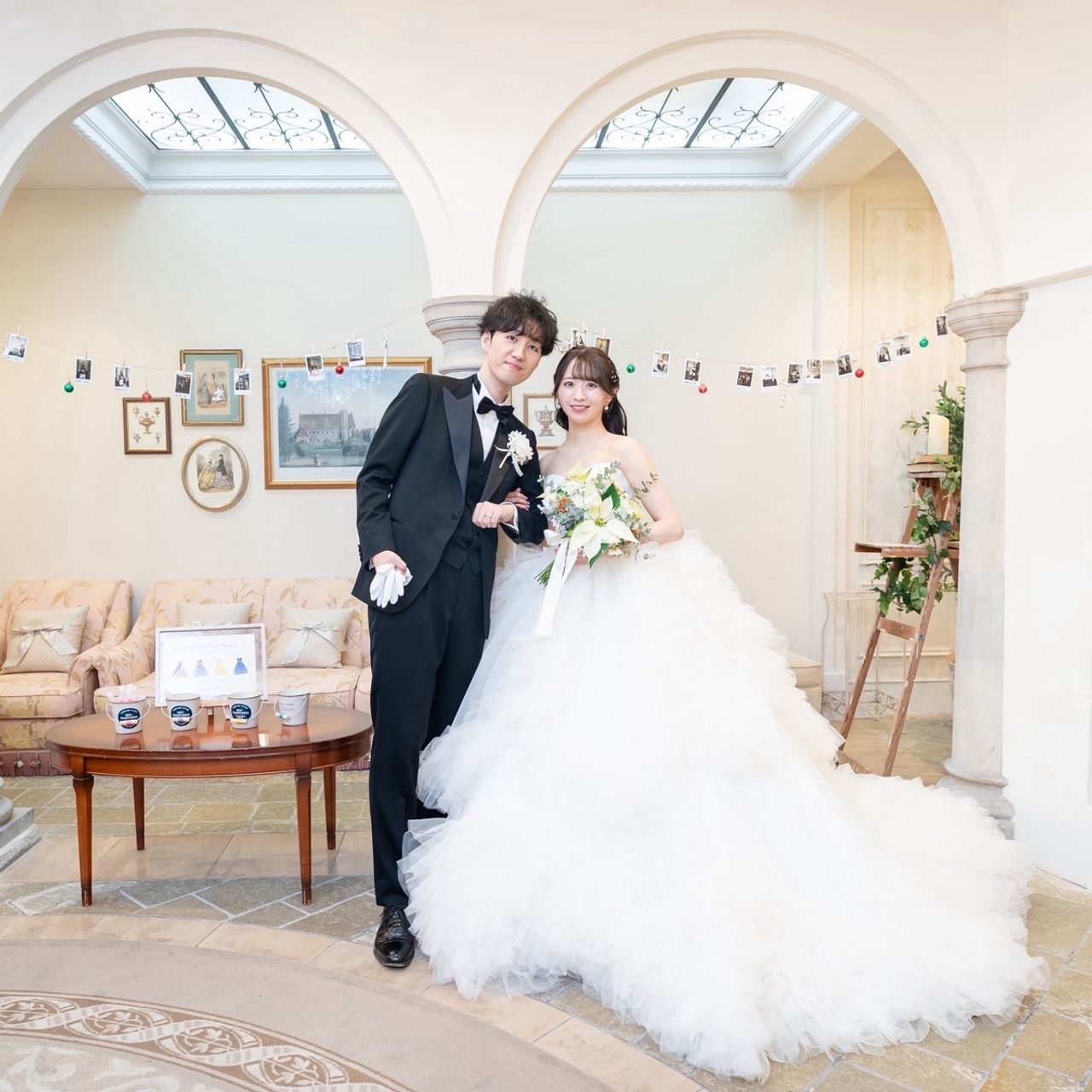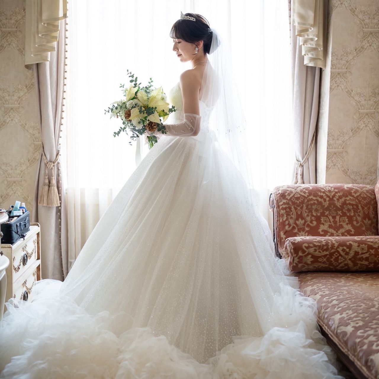このドレスはスタイルのアレンジが豊富で、チュールスカートを重ねることでさらに華やかさが増すところに一目惚れしました。冬婚にぴったりのふわふわとしたデザインもとてもお気に入りで、特別な一日にふさわしい一着に出会えたと感じています。