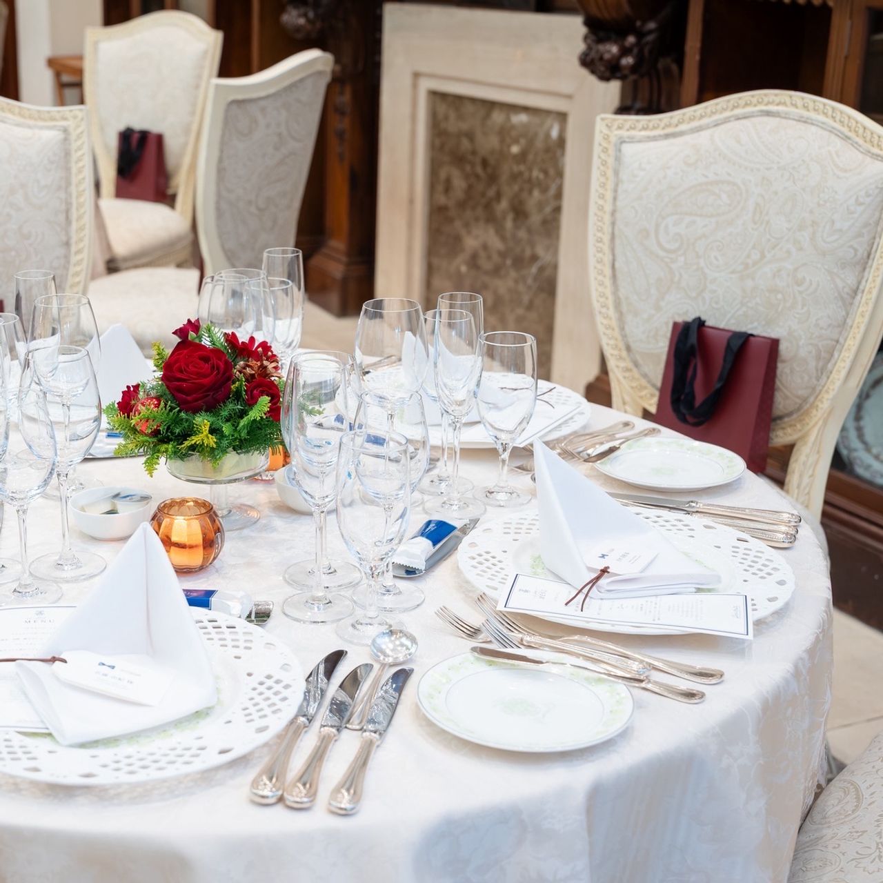 どのような装飾にしたいか明確なイメージがあったため、事前に何度も写真で共有しながら打ち合わせを重ねたおかげで、当日はクリスマス感あふれる会場装花に仕上げていただき、大満足のコーディネートになりました。