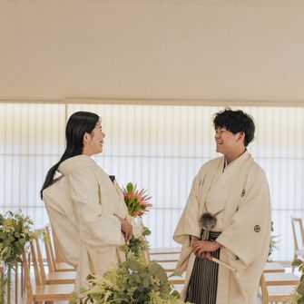和×洋でちょっぴりクラシカルでモードな感じをイメージしました!カチッとしすぎず、アットホームな感じも欲しかったのでカジュアルな要素も取り入れました。MIRAIE Wedding(ミライエウェディング)を選んだ理由は、建築美に惹かれたからです。チャペルだけど白無垢でも合う所を探していたので、理想でした!
