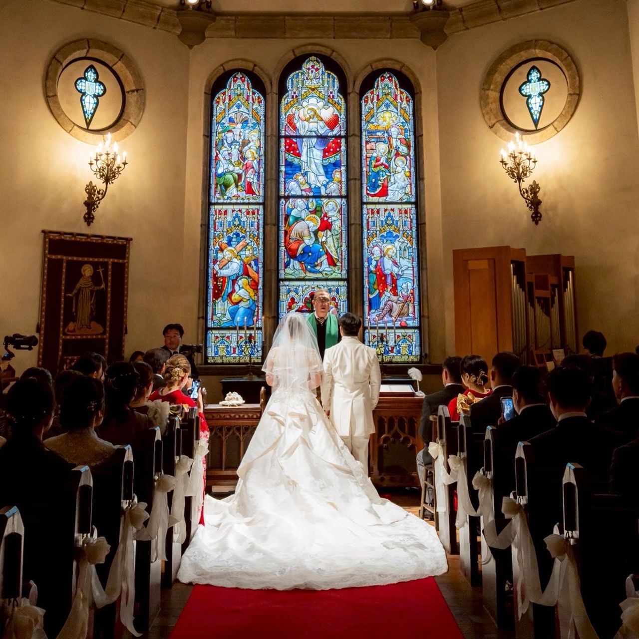 挙式会場は、ステンドグラスがとても綺麗でした。
