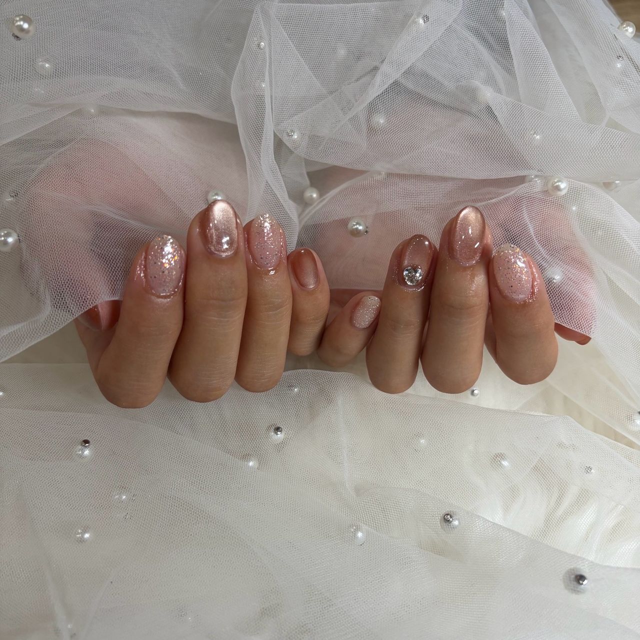 ウェディングドレスにもカラードレスにも合うようなデザインにしました。ウルウルのマグネットと、左薬指のパーツがお気に入りです!