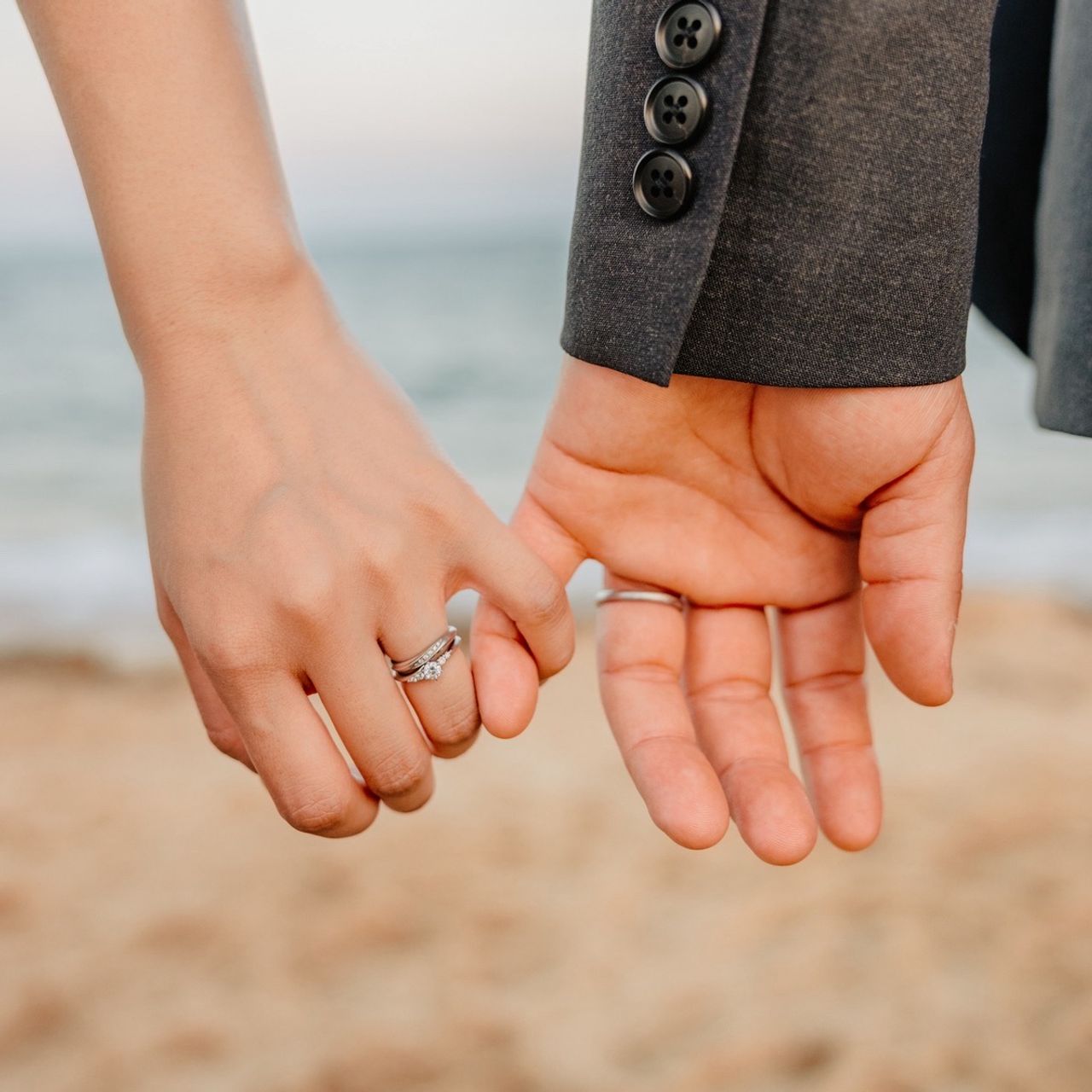 婚約指輪とは違う種類ですが、私の指輪に斜めに入っているダイヤと、夫の指輪の艶消しの部分がリンクしていて、婚約指輪とも合ったので決めました。