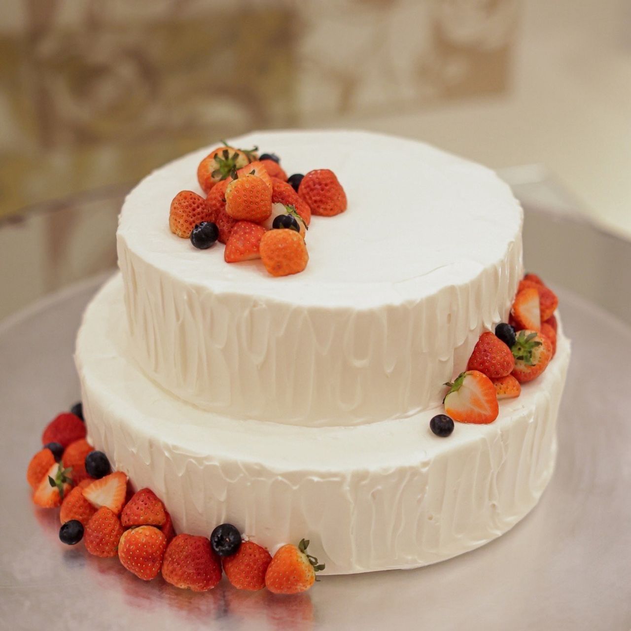 ストロベリーがのったシンプルなケーキでしたが、側面に少しデザインを入れておしゃれにしてもらいました。