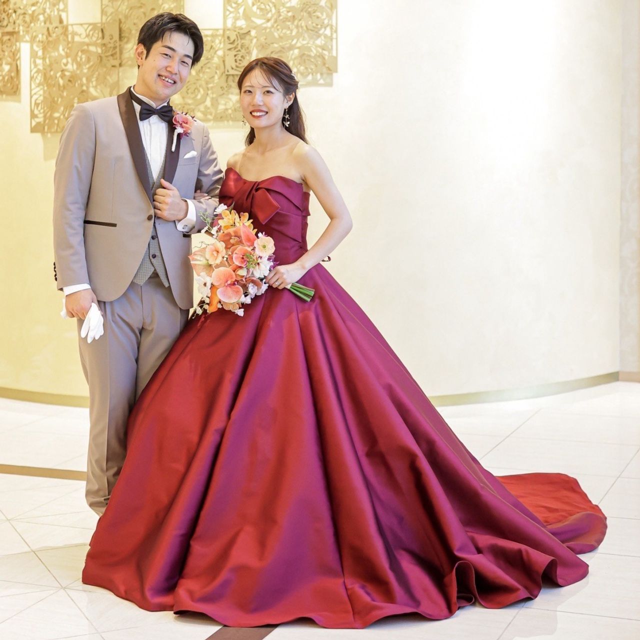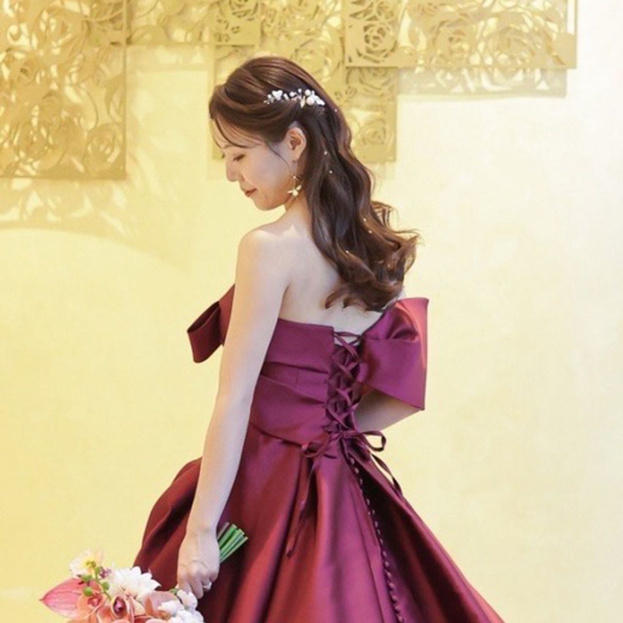 カラードレスは、同じくイリーダメゾン(Irida maison)の色合いと胸元のリボンデザインがオシャレで即決したものです。