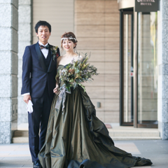 1着目と同じ雰囲気のものにしたくないということ、そして、個性を出したい、だけどホテルの雰囲気の重厚感、そして、ウッド系からは外したくない、という思いでこのドレスを選びました。