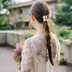 メイクは、ツヤ感を重視していただき、お色直し後はリップの色を変更、ゴールドマスカラをプラスしていただき印象が変わるようにしました。