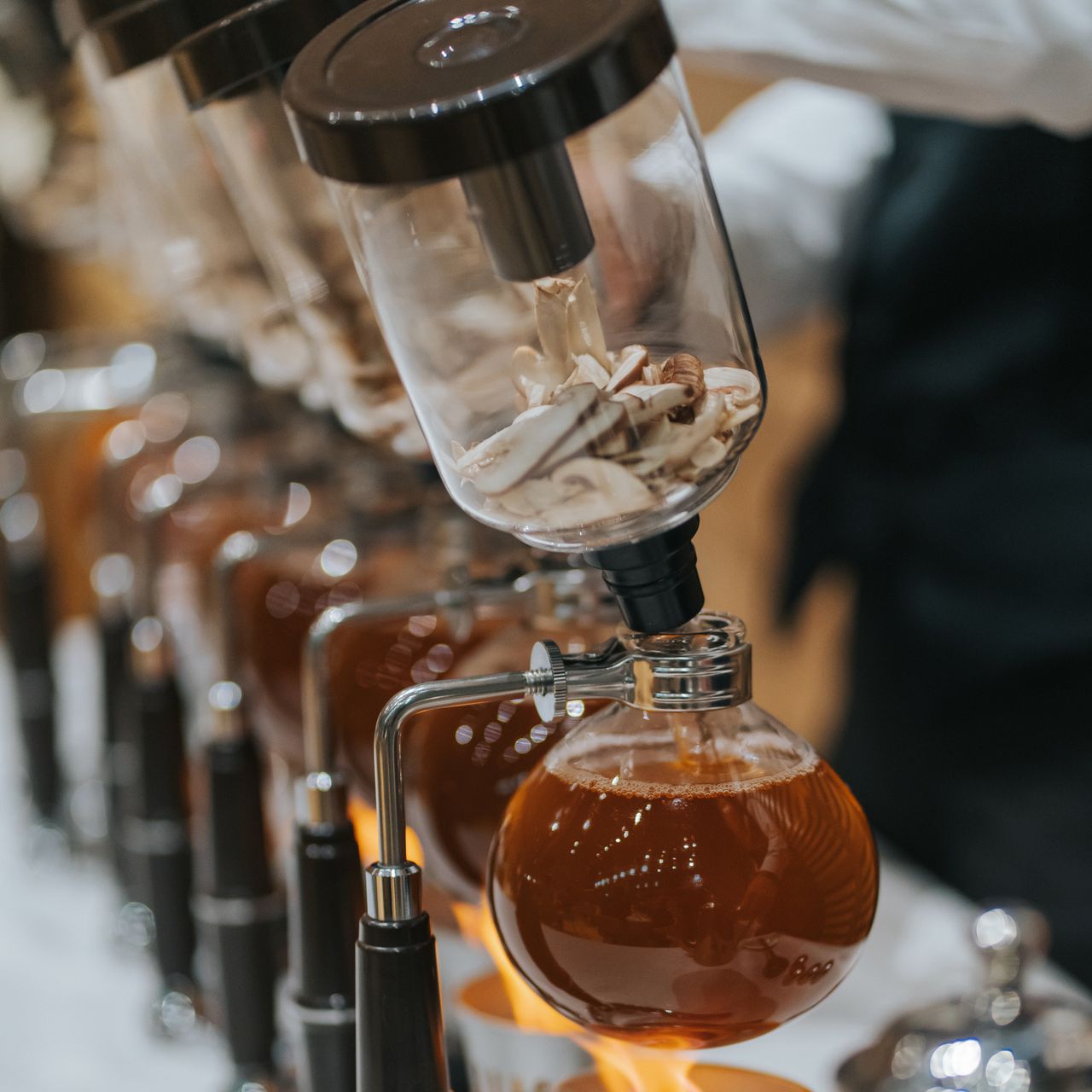 お肉もお魚も取り入れましたが、特に印象的だったのは「コンソメサイフォン」というスープです。目の前でスープを蒸留するように作ってくれるので盛り上がりますし、キノコの香りが芳醇で、本当に最高でした。