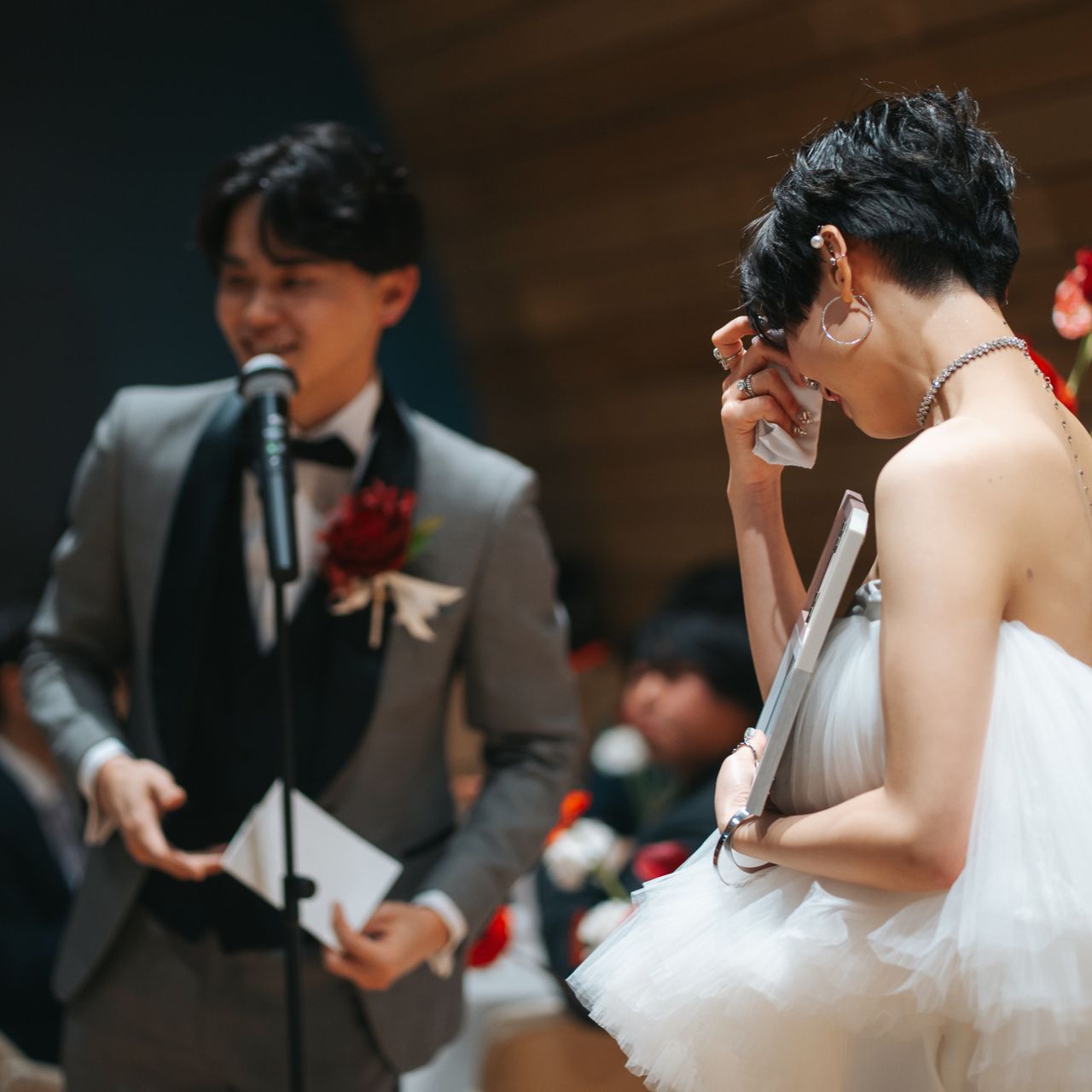 夫がサプライズでビデオレターとお手紙を読んでくれたことと、大好きなゲストが集まって私たちを祝福してくれたことです。