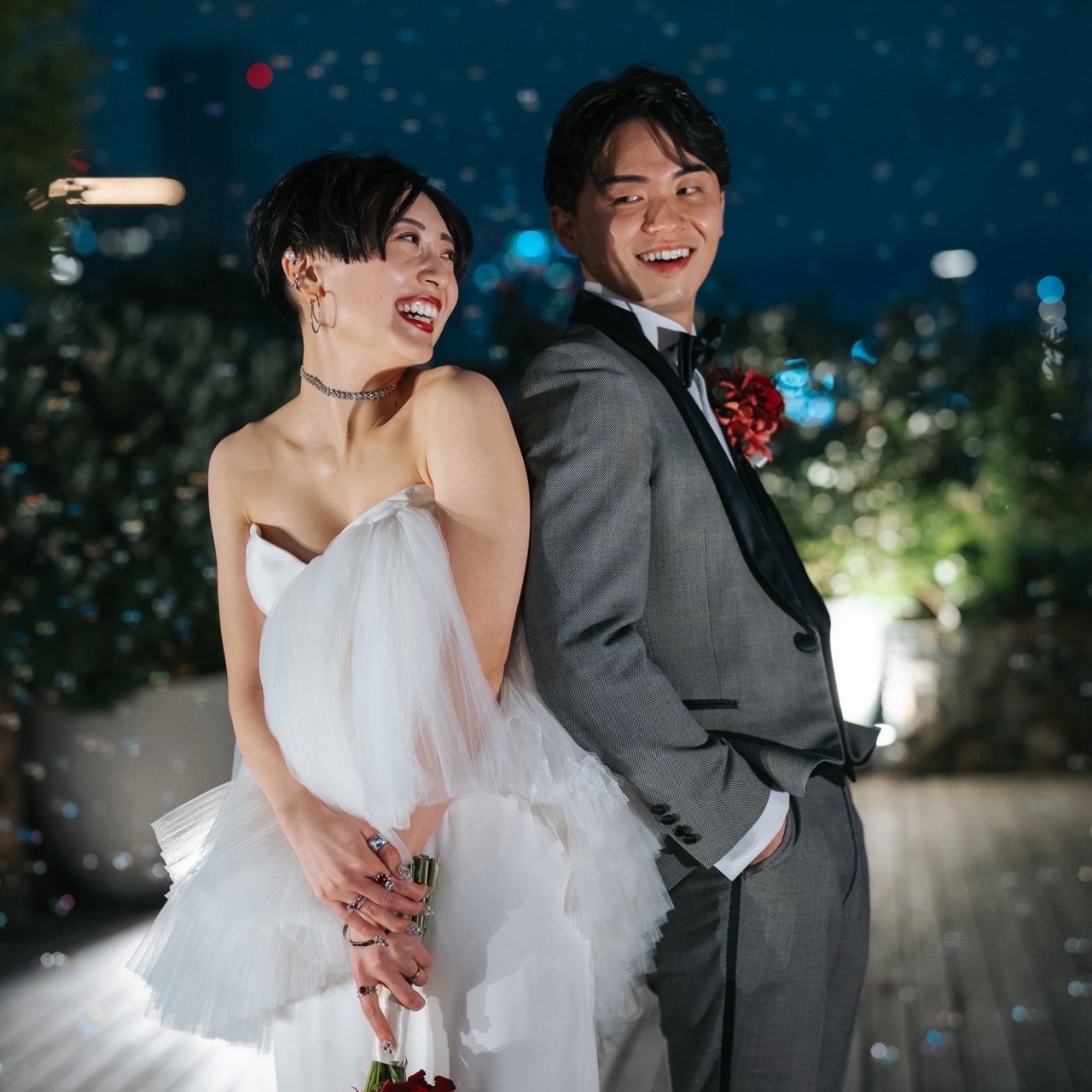 私たちは、午後の挙式だったため逆光にはなりましたが、その光が二人のシルエットを美しく浮かび上がらせ、東京の景色と重なった印象的な写真を残すことができました。もちろん、会場のカメラマンさんは表情もしっかりと撮影してくださり、どの写真も大切な思い出になっています。