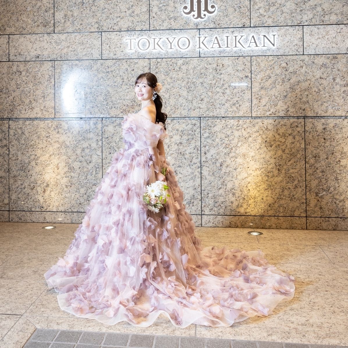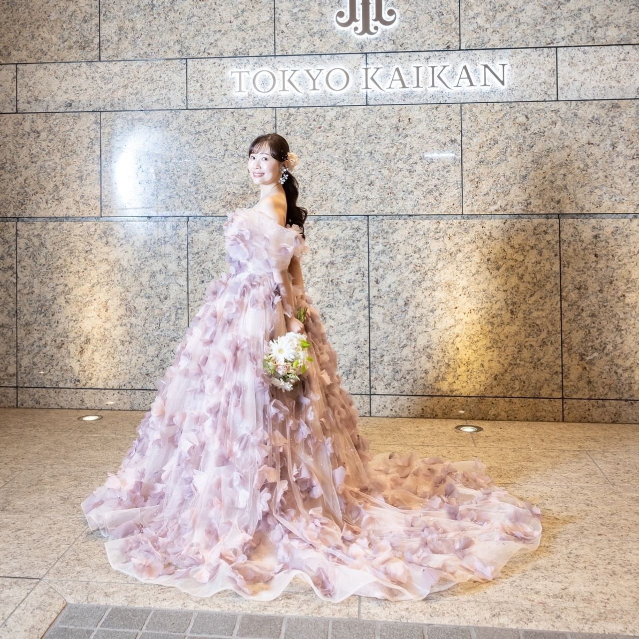 衣装はクラシカルなEmarieのドレスをオーダーし、リボンボンネとティアラで王道に。カラードレスは素材を変えてチュール系にして、新作のHatsuko endoのChouchouをリクエストしました。