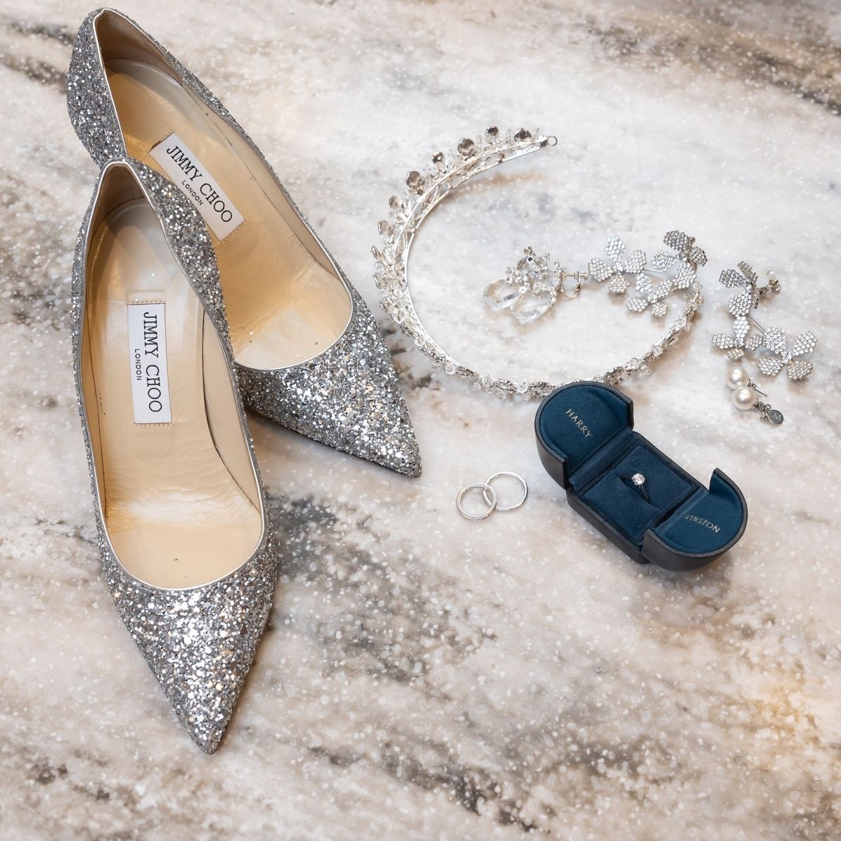 卒花嫁さんの投稿を見ていて王道のキラキラのシルバーの靴を用意しました。見えないけれどテンションがあがりました。