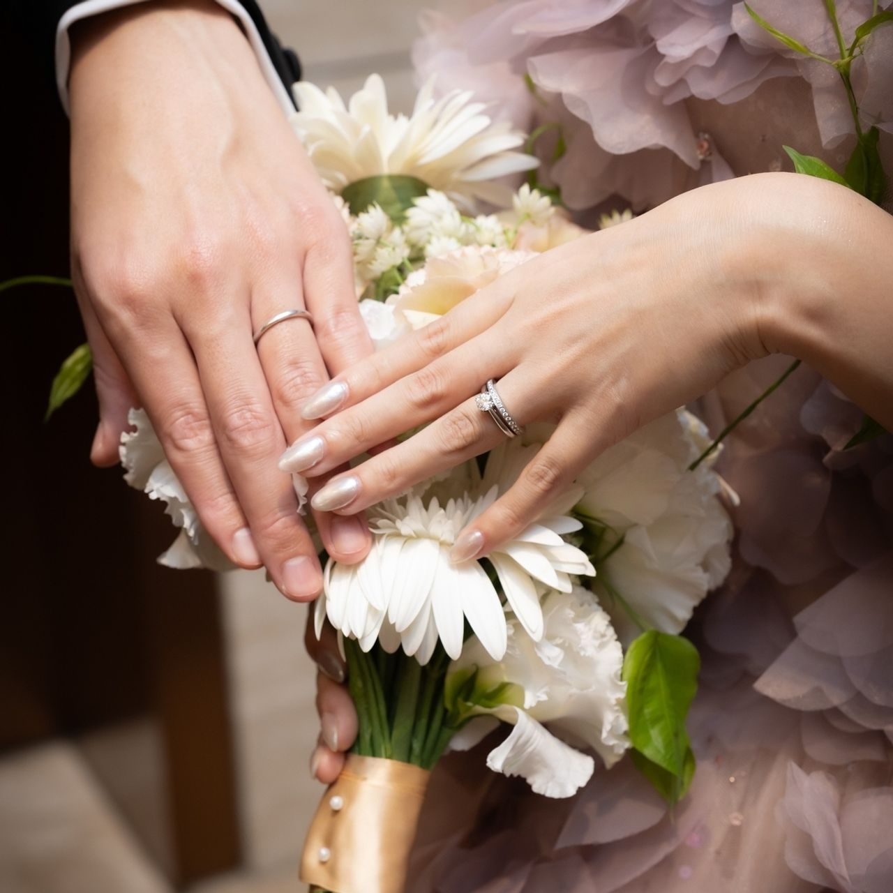 新婦はフルエタニティで検討していて、細すぎない幅のフルエタニティを選んています。