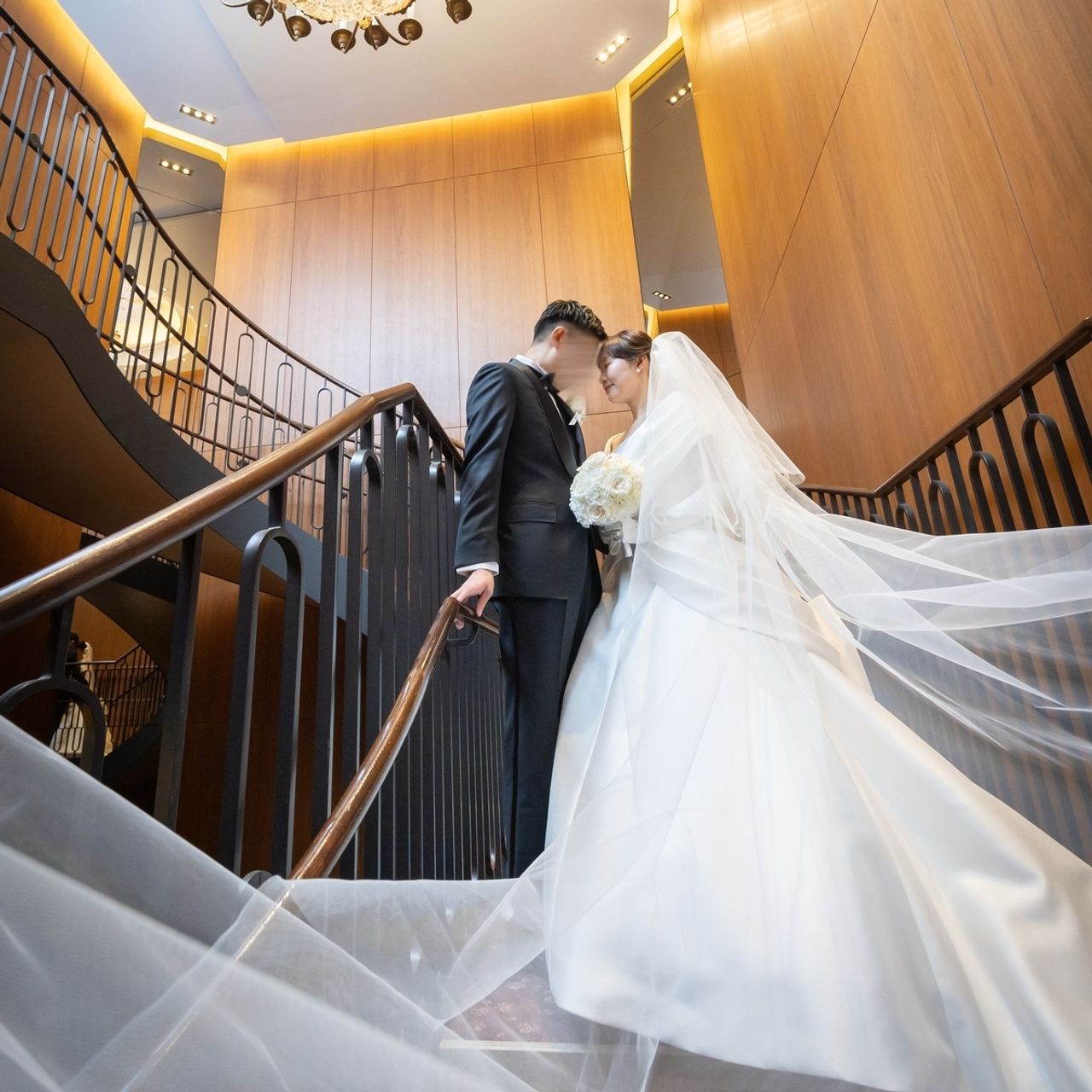 1着目とは雰囲気を変えてチュールデザインにしています。ドレス選びは最後まで難航しましたが、新作をみた際に、びびびっと来てすぐ試着&契約に至りました。
