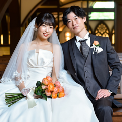 シンプルにしましたが、ブーケのお花の色と合わせてオレンジをポイントにいれました!