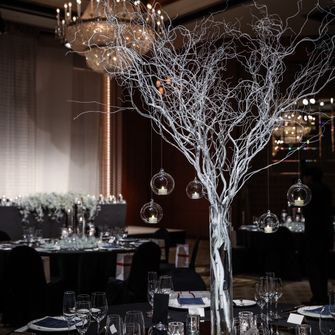 花言葉は“感謝”“幸福”で「私たちに関わってくださった皆様に感謝し、幸せが訪れますように…」をコンセプトに霞草をあらゆる所に使用しました。霞草は星屑に似ていることから、七夕と関連があるそうです。会場コーディネートも霞草を使い、夜空を連想させるようなものにしました。