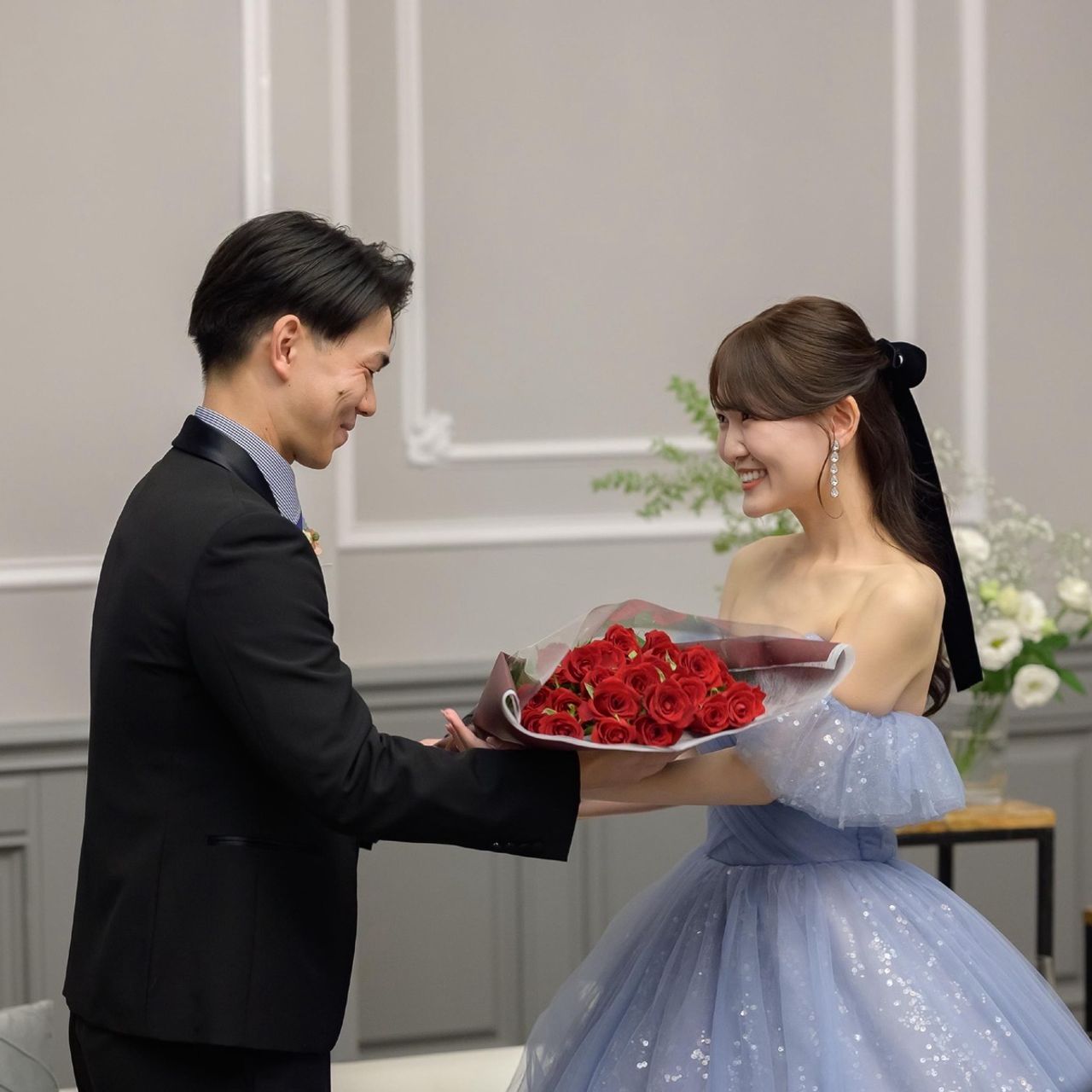 また、披露宴の退場の際に赤いバラと親族や友人の優しい表情がよく見えて、感動して思わず涙が溢れました。