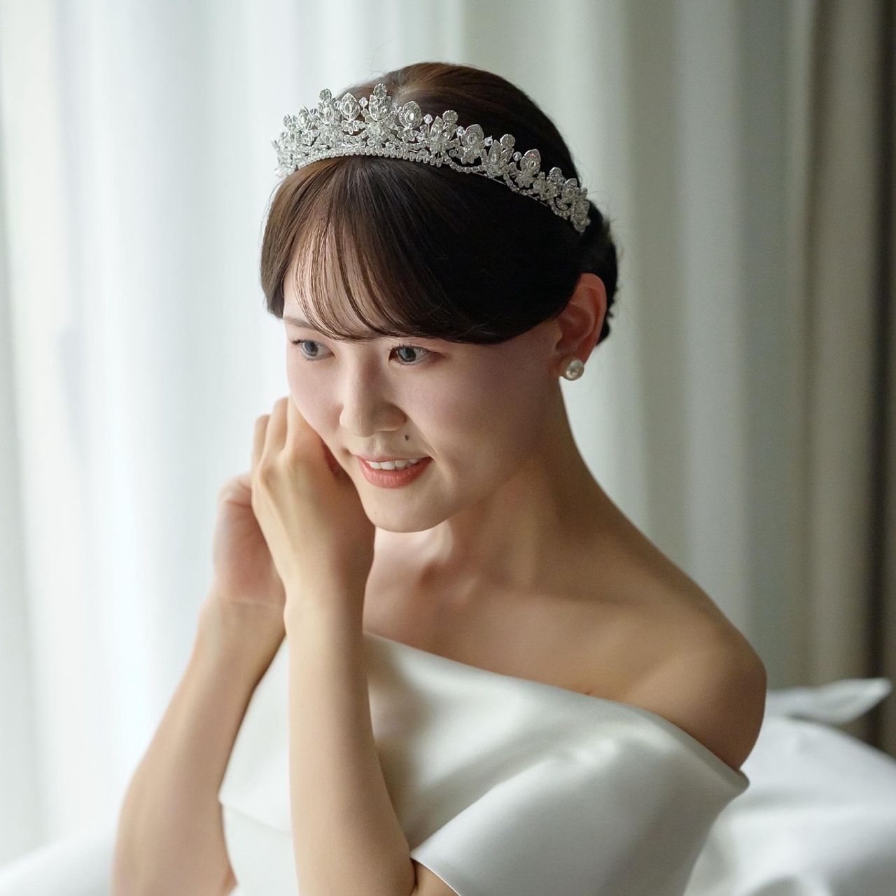 サイドまでしっかりと縦幅のある華やかなデザインで、実物の輝きが本当に綺麗です。ウェディングドレスと合わせたのですが、シンプルなドレスにティアラの華やかさがマッチして、上手くバランスが取れたと思います。