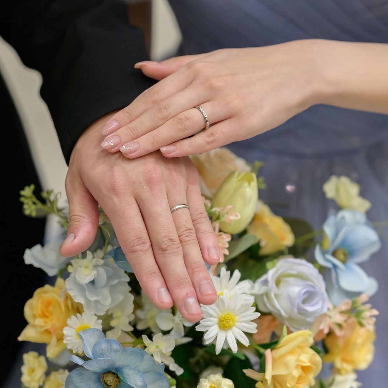 上品なイメージの国内ブランドがいいなと考えていたので、試着をして気に入ったダイヤ3石のデザインにしました。夫はダイヤなしのシンプルなものに。