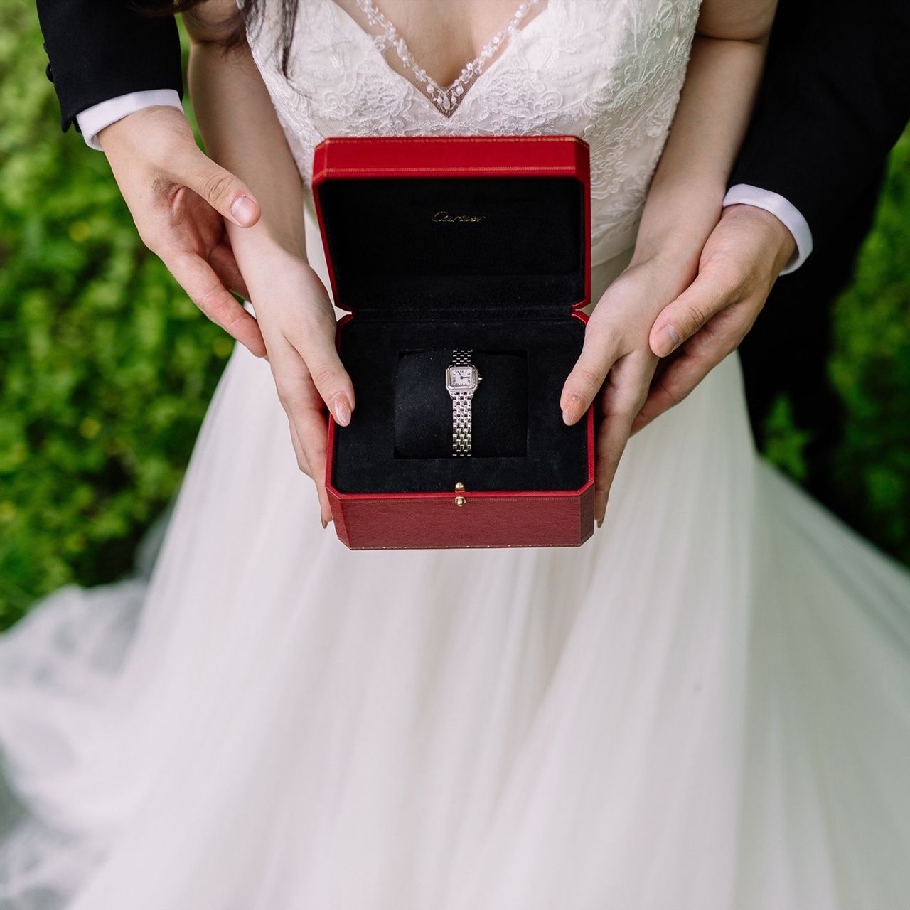 指輪ではありませんが、婚約時計としてCartierのパンテールミニを贈ってもらいました。