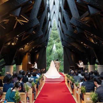 遠方からのゲストが多いため「おもてなし」をコンセプトに、カジュアルに楽しんでもらえるようにしました。迎賓館は1日2組と限定のため、他の組のゲストを気にする事なく広い会場を貸切で使うことが出来るのが良かったです。また、周囲は緑に囲まれており、日々の喧騒を忘れられる自然溢れる空間だったことも迎賓館を選んだポイントです。