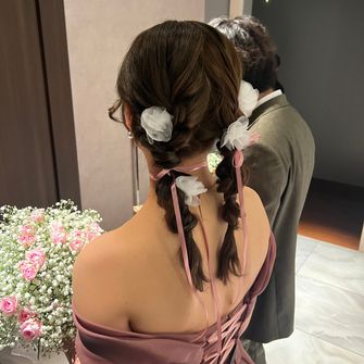 今しかできないこととしては、普段なかなかできないツインヘアにリボンをちりばめて、可愛いが盛りだくさんのヘアにしました!
