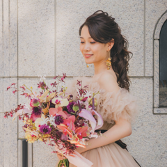 中々思い描くドレスに出逢えず、一度は和装に決定しました。ですが、延期を経て心境の変化などもあり、ドレスショップに沢山通う中で、スレンダードレス、カラードレスと試着を重ね今のドレスにであうことができました。