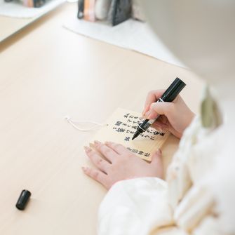 最近ではエスコートカードの演出は増えてきていますが、神社婚にちなんでお守り型にしたのがポイントです!