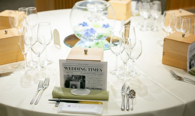 披露宴では席次表は両家両親分のみ用意し、ゲストの皆様にはエスコートカードとシーティングチャートのみで席をお知らせしました。