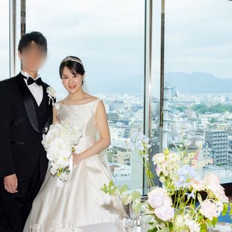 式場を決めた理由は、オークラというブランドやサービス、プランナーさんの存在、大階段やロビーの高揚感、京都一高いホテルでアポロンからの景色、挙式から披露宴までの動線の簡潔さ、そしてアクセスの良さなど「近さ」の観点からも理想的だったからです。