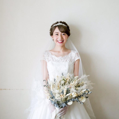 ウエディングドレスはティアラをつけ、カラードレスにはドライフラワーをたくさんつけました。