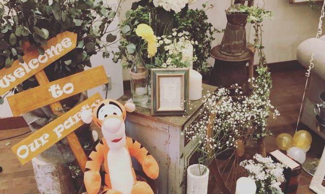 くまのプーさんの100エーカーの森をテーマに挙式しました!サブテーマはゲストの方を「おもてなし」!余興は新郎新婦が行いました✨少しずつレポを書いています